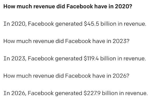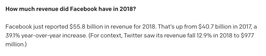 In 2020, Facebook's revenue was actually about $86B, and I guess we’ll have to see about the rest.
